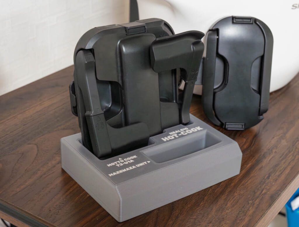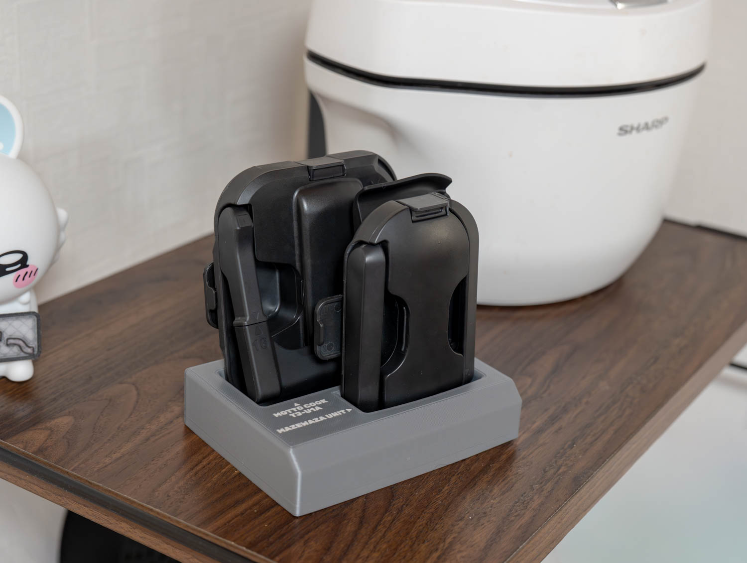 手前に標準のまぜ技ユニット、奥にもっとクック(TJ-U1A)を差し込んで立てておけます。