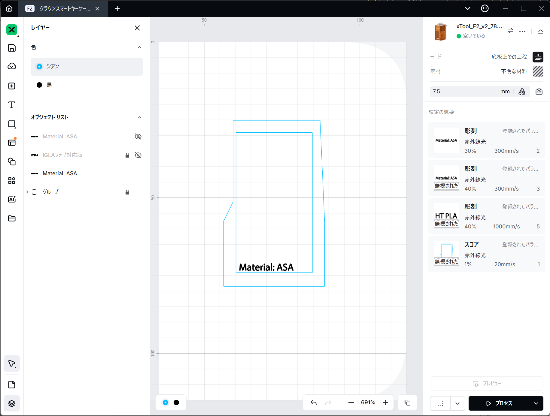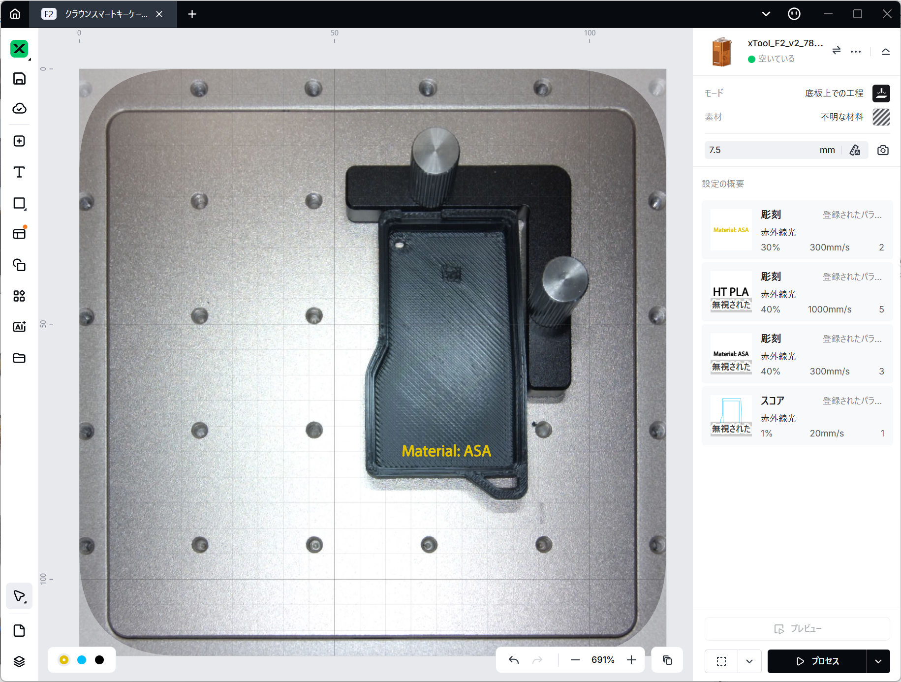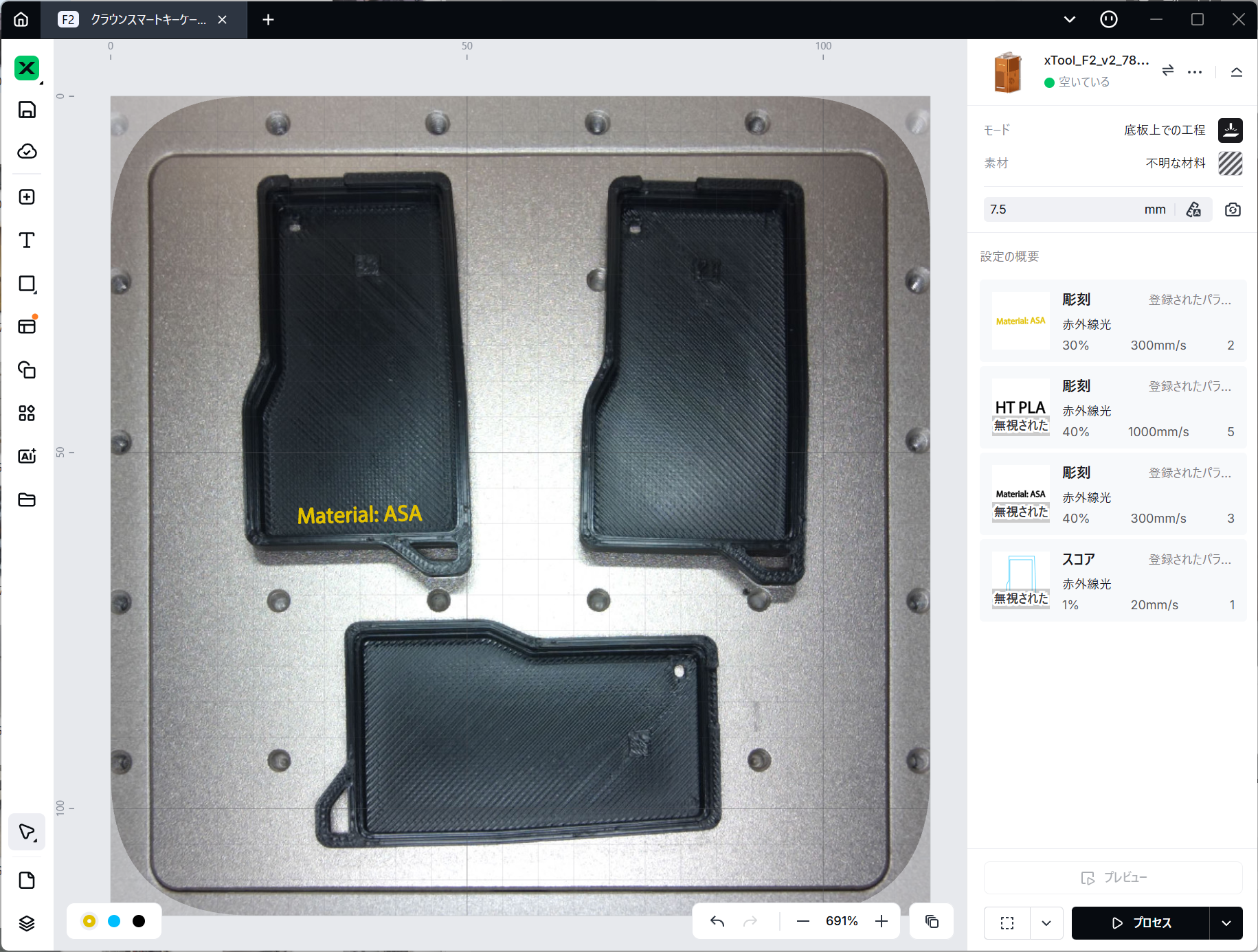 それが今回F2にカメラが搭載されたことで、xTool Studio上で位置あわせをできるようになり、最終的にスタートボタンを押す時だけ本体前に行けばよくなりました。この価値はプライスレスです。
