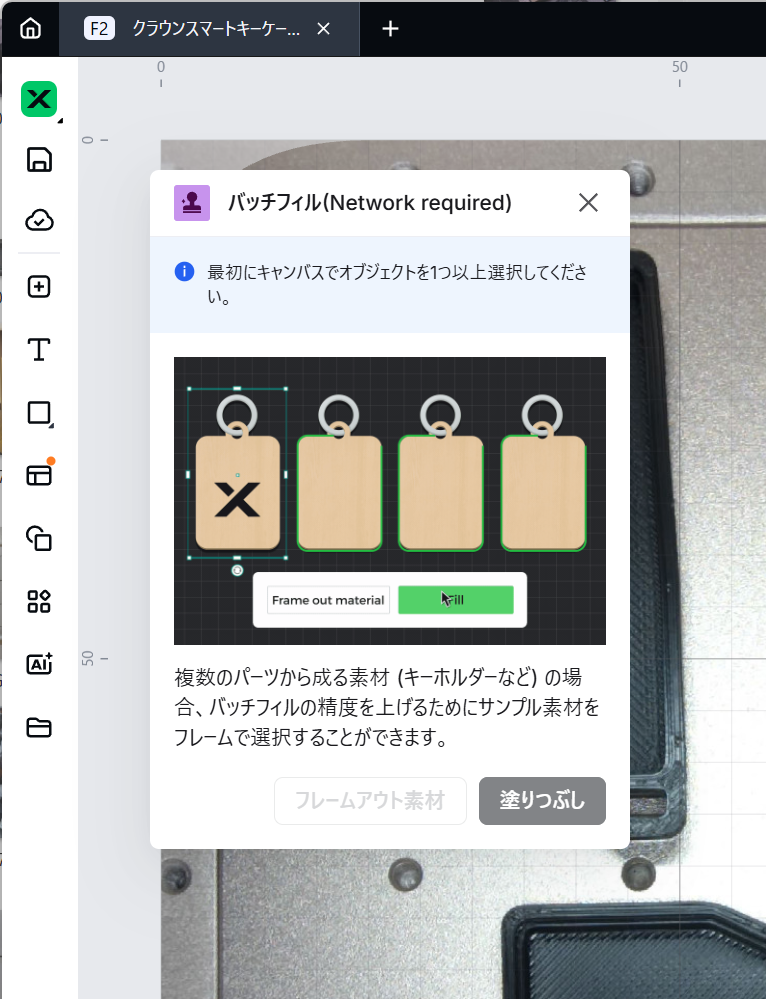 アプリケーションメニュー(左サイドバーの下から3つ目)から「バッチフィル」を選択します。(Network required)となっているので、認識処理はクラウドで行うようです。