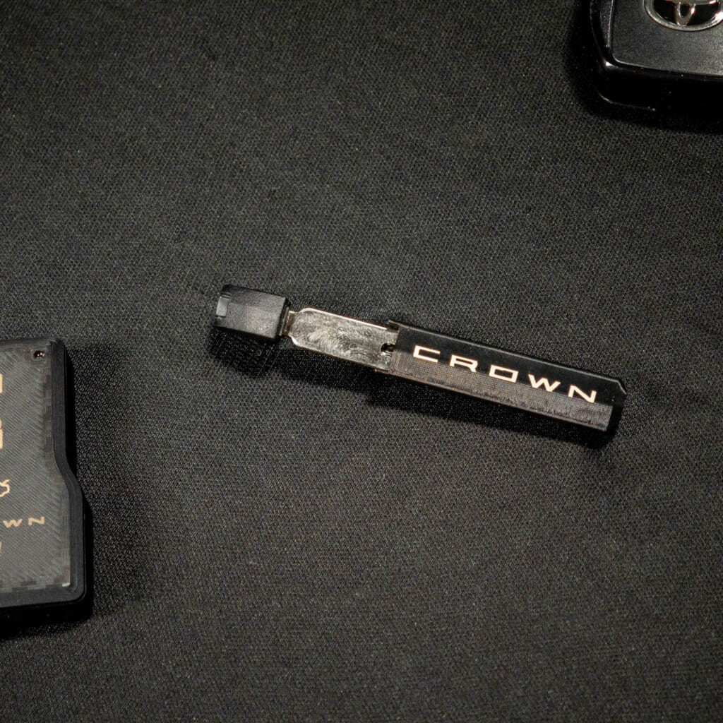 メカキーを廃して基板ギリギリサイズのケースを3Dプリンターで自作したのです。今回はメイン車両である新型クラウン用のものについても改めてチャレンジしてみた、という記事になります。先の写真のスマートキーはトヨタの現行車種の多くでも使われているタイプです(ハリアー、カローラシリーズ、ヤリスシリーズなど、電動ハッチバック非搭載車は2ボタン)。
